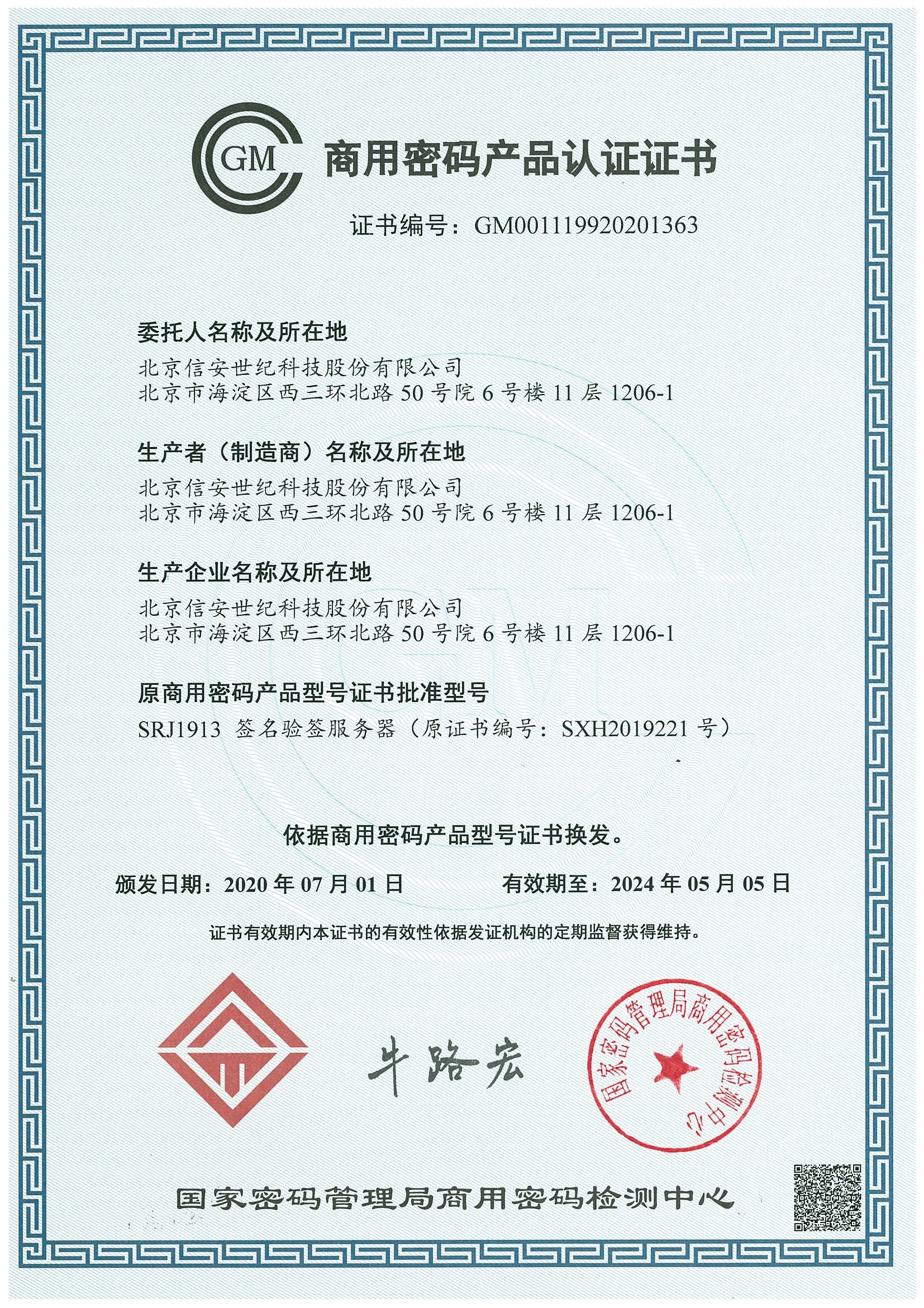 商用密码产品型号证书复印件